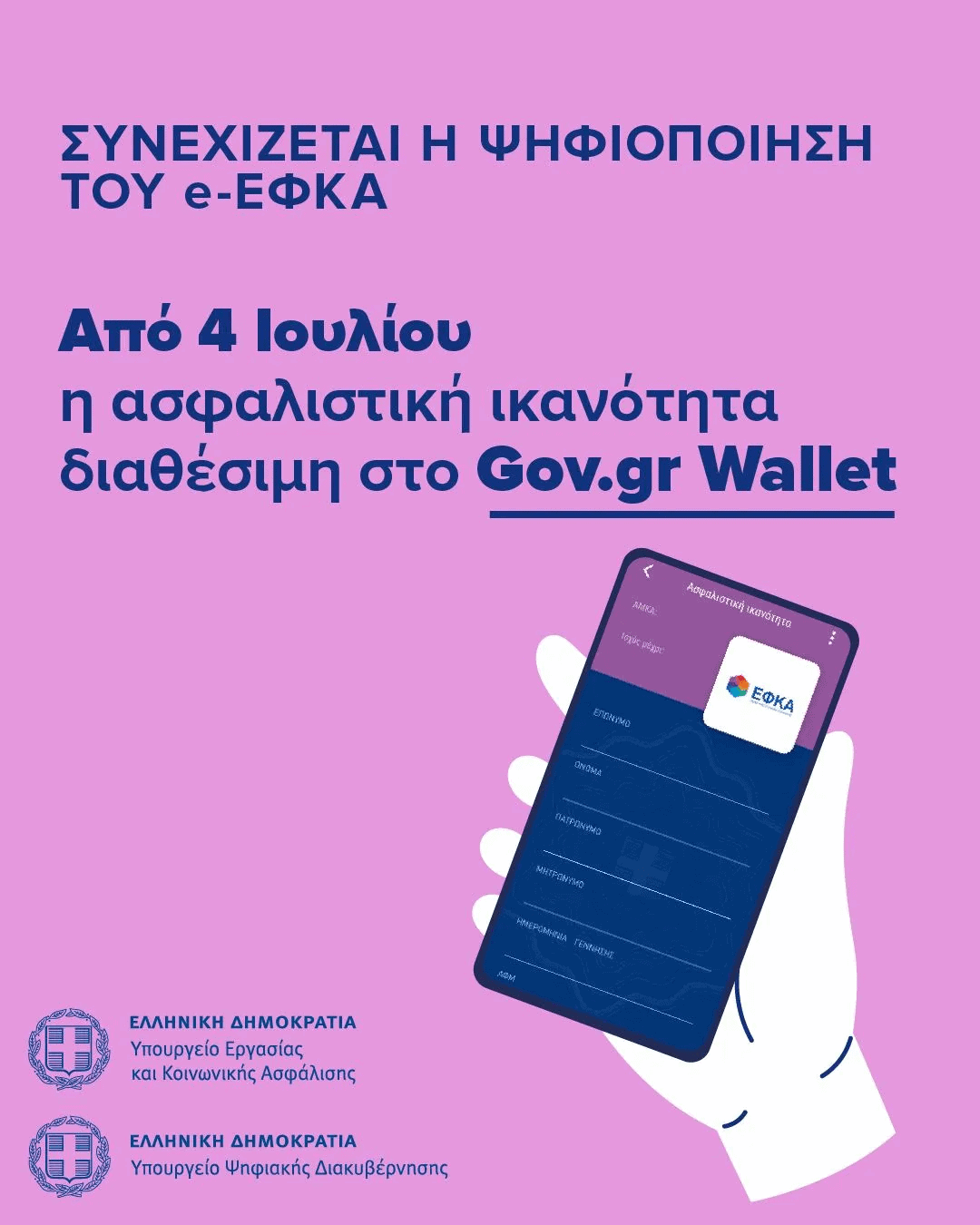 Στο Gov.gr Wallet η Ασφαλιστική Ικανότητα των ασφαλισμένων του e-ΕΦΚΑ