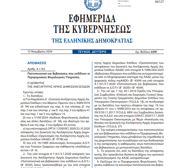 Πιστοποιητικά και Βεβαιώσεις που εκδίδουν οι Περιφερειακές Φορολογικές Υπηρεσίες